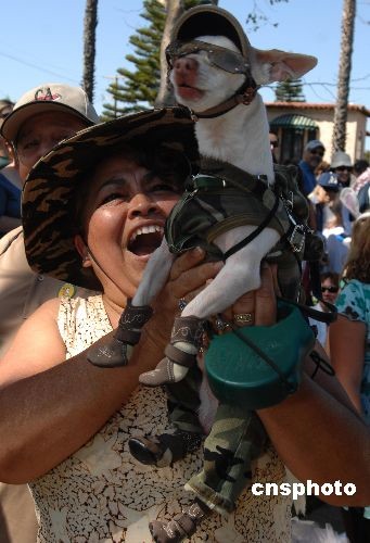 圖為一只洛杉磯長灘愛犬參加“選美”。中新社發 張煒 攝