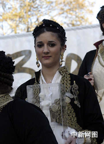 3月26日,北京奧運會圣火希臘境內(nèi)傳遞第三日,抵達當天最后一個城市韋里亞。圖為慶典儀式上的禮儀小姐。中新社記者 王歡