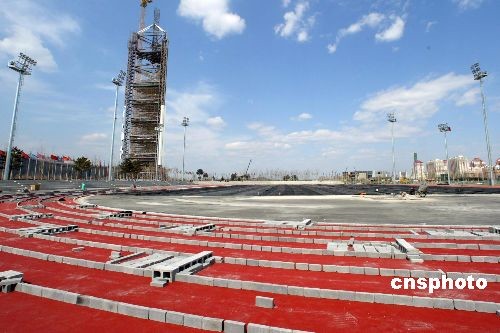 圖:奧運“鳥巢”熱身場地塑膠跑道鋪設基本完成(2)