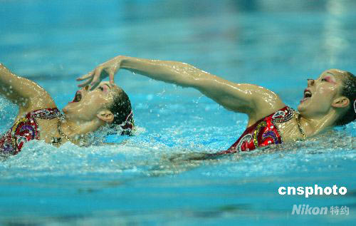 圖:花游奧運資格賽中國姐妹花成功首演(2)