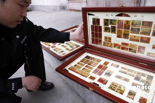 8個騙子組成的詐騙團伙,進京后專用假“文革純金郵票”進行詐騙,一個月的時間里騙了數萬元人民幣,8名嫌疑人為40—60歲的中老年人。近日,于某等8人已被北京海淀警方刑事拘留。中新社發 董瑞 攝