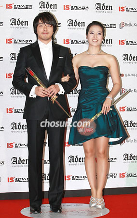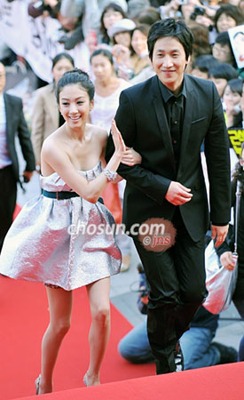 組圖:韓國(guó)百想藝術(shù)大獎(jiǎng)男女主角攜手入場(chǎng)