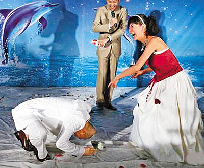 中新網5月4日電 湯鎮業前晚(2日)在青島郎園酒吧舉行秘密婚禮,迎娶青島姑娘文靜。一對新人與海甚為有緣,幾年前在海南島海邊相識,又情訂于海邊,最后選擇在海邊的酒吧結婚。婚禮現場湯鎮業更重演跪地求婚一幕,溫馨感人。