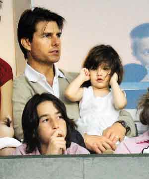 貝克漢姆好友湯姆·克魯斯10日一家大小到球場觀看老友比賽,養子康納與養女伊莎貝拉也有到場,但都不及“好萊塢公主”蘇瑞搶鏡,被老爸抱在懷中的她,全程表現悶悶不樂,除了悶到吞拳頭,還扭耳朵。即便靚湯和霍爾姆斯看得目不轉睛,蘇瑞也只是自顧自趴在老爸的肩上。此外貝克漢姆三位公子也和靚湯一家坐在看臺上,相比蘇瑞的郁悶,他們投入很多。