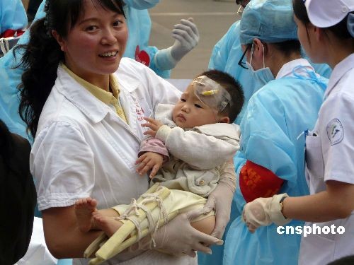 5月19日下午五點半多,四川汶川地震災(zāi)區(qū)的一批重傷員抵達重慶,重醫(yī)附一院的醫(yī)生護士象解放軍野戰(zhàn)醫(yī)院搶救傷員一樣投入搶救,猶如前方的戰(zhàn)場。