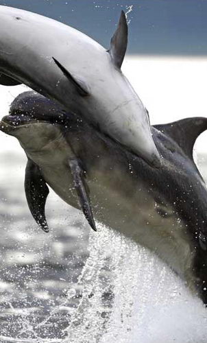 兩只海豚親密接觸。