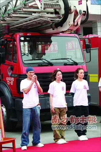 為探訪救災英雄,劉德華、鄭秀文、容祖兒來到消防局。