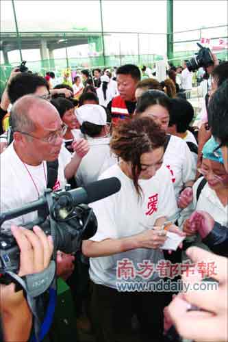 鄭秀文的親筆簽名,也給她在災區的粉絲們帶來了快樂。