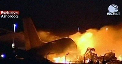 蘇丹客機偏離跑道并著火