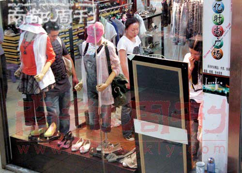 小宋佳在時裝店里挑衣服,猛男在一旁把關。