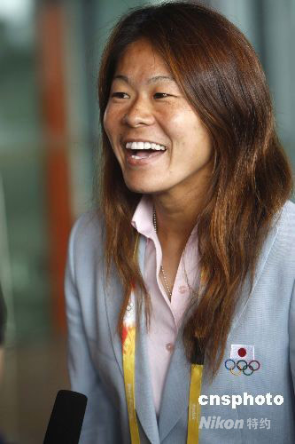 7月31日,日本女足中場核心澤穗希隨隊抵達北京首都國際機場,她在2008女足亞洲杯期間獲得最佳球員稱號。中新社發 杜洋 攝