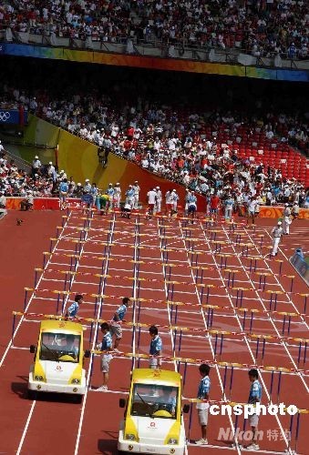 北京奧運會田徑男子110米欄第一輪比賽,8月19日上午在北京奧林匹克公園內(nèi)的國家體育場舉行。中新社發(fā) 任晨鳴 攝
