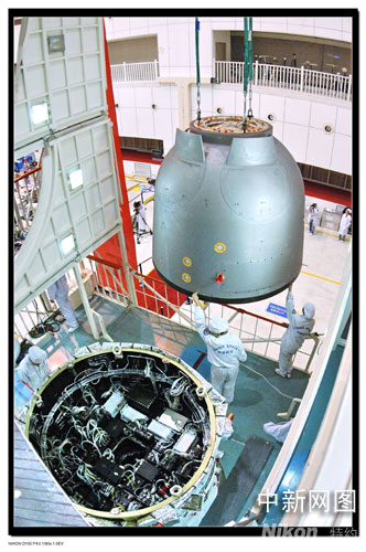 中國神舟七號載人航天飛船發(fā)射在即。圖為飛船對接。袁明月 攝