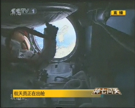 9月27日,航天員開始出艙指令已經(jīng)下達,神七航天出艙活動開始。