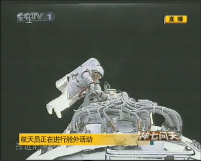 9月27日,“神七”航天員翟志剛出艙活動結(jié)束返回軌道艙。
