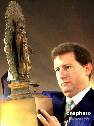圖為六世紀 釋迦牟尼佛銅像,價值一千四百萬港幣。中新社發 張勤 攝