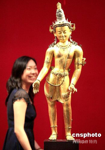 圖為鎏金銅佛像,價值六百萬美金。中新社發 張勤 攝