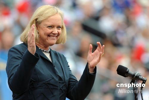 圖為EBAY前CEO梅格·惠特曼女士到場演講,為共和黨助威。梅格·惠特曼目前是麥凱恩競選班子成員。中新社發 張煒 攝
