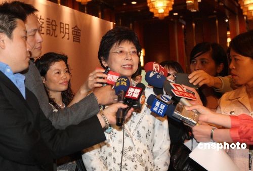 10月14日,臺灣“觀光局”局長賴瑟珍以臺灣海峽兩岸觀光旅游協會長名義,率領臺灣一百多家旅游業者,在北京舉辦旅游推廣說明會。中新社發 廖文靜 攝