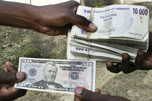 津巴布韋發行世界上面額最大鈔票面值2.5億(圖)