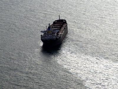 被撞的“賽羅斯”號(hào)拖著長(zhǎng)長(zhǎng)的油污。