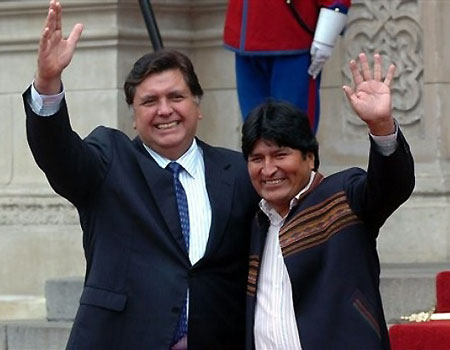 秘魯總統加西亞(左)與玻利維亞總統莫拉萊斯