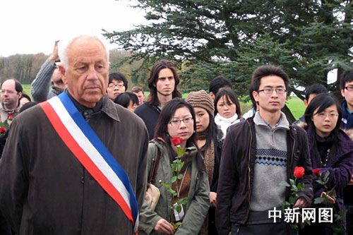 中新網(wǎng)巴黎11月15日電 (黃滟稀) 為紀(jì)念一戰(zhàn)結(jié)束九十周年,緬懷為法捐軀華工先輩,近百名旅法華人、留法中國學(xué)生以及法國友人15日在法國北部諾萊特華工墓園舉行了莊重的祭奠儀式。