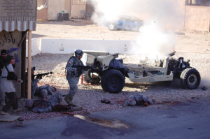 19歲的新兵茲莫曼(JESSE ZIMMERMAN)一個(gè)月后就要駐軍伊拉克了。他說(shuō),這種好萊塢效果的訓(xùn)練場(chǎng)所讓他增強(qiáng)了駐軍伊拉克的信心。他的戰(zhàn)友,已有五年軍齡的薩普爾(RAYMOND SAMPLE)表示,這種逼真的訓(xùn)練即使對(duì)他這種在伊拉克服過(guò)27個(gè)月兵役的老兵也仍然很有幫助。
