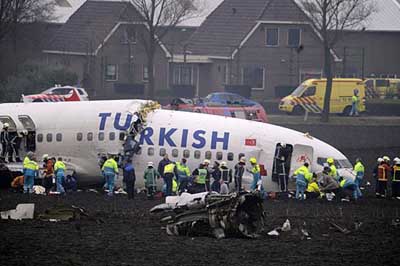 有現場目擊者稱,飛機在機場跑到附近的泥濘地墜毀,機身斷為三截,機尾、引擎與機身脫離。但慶幸的是,飛機未發生爆炸,也未起火。荷蘭官員稱此次空難造成傷亡人數如此至少實為“奇跡”。