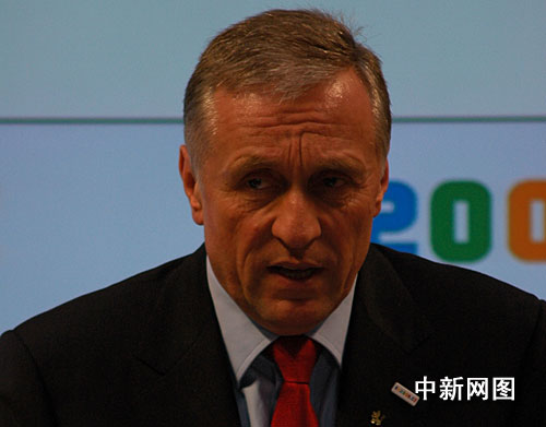 托波拉內克2009年1月7日在布拉格舉行的歐盟新聞發布會上。 (攝影:黃頻)