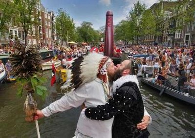中新網8月4日電 荷蘭阿姆斯特丹市長科恩8月1日為五對同性戀人主持婚禮,掀起該市支持同性戀者年度水上大游行的高潮。