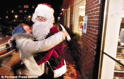 中新網(wǎng)12月25日電 據(jù)香港《文匯報(bào)》報(bào)道,美國緬因州波特蘭一名神秘圣誕老人,23日走到大多窮人光顧的二手商店外,大派100封裝有100美元現(xiàn)金的信封,民眾大感意外,一名捉襟見肘的婦人感動(dòng)得擁抱圣誕老人。派錢救濟(jì)窮人的是當(dāng)?shù)匾幻涿倘耍蓛鹤影缱魇フQ老人派錢,自己站在遠(yuǎn)處旁觀。