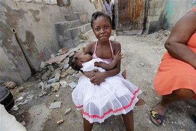在太子港一所孤兒院,一百二十五位小朋友中有五十人不幸喪生。另一所孤兒院現在成了臨時庇護中心,二十個孩子雖然有地方暫時棲身,但是物資極度缺乏。現在海地至少二十萬名孤兒急需外界援助,在西方國家有許多想要領養的民眾卻是苦苦等候。