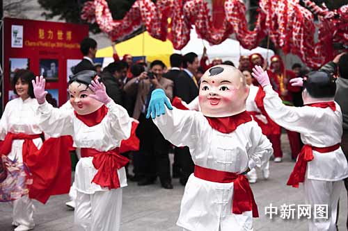 春節(jié)祭開場,各式中國傳統(tǒng)民俗表演讓日本當(dāng)?shù)厝烁惺艿搅酥袊鴿鉂獾哪晡丁N椠垺⒑荡⒋箢^娃娃、太極拳,場面分外熱鬧。