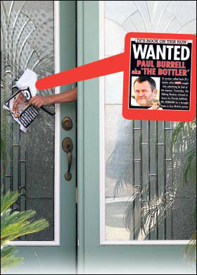 近日英國一家媒體將保羅•伯勒爾被“通緝”的海報貼在他家門口、他家的鮮花店以及他所在的小鎮中。保羅•伯勒爾終于“現身”,雖然只有一只胳膊——他從門縫中伸出胳膊,撕下了海報。