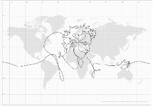 細的托運路線和順序。55天之后,這個箱子在橫跨全球6個大洲62個國家后,順利回到了起點——斯德哥爾摩,全部行程約110664公里。然后,埃里克借助電腦將GPS記錄下的路線串聯起來,繪出一幅“一筆劃的自畫像”。就在舉世驚嘆之際,他卻于日前在其官方網站上“不打自招”,所謂“自畫像”不過是他為完成畢業設計而虛構出來的一場鬧劇!