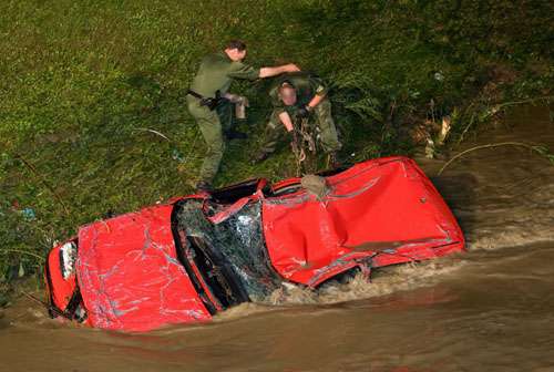 據(jù)報道,在措勒納伯縣,有多輛汽車被洪水卷走(見圖),目前車上人員生死不明。當(dāng)?shù)匾殉闪⒁粋危機(jī)應(yīng)急指揮部。在容吉根地區(qū),大量房屋浸泡在水中,電力供應(yīng)中斷。在上施瓦本地區(qū),一列列車撞上了被暴風(fēng)雨刮倒的樹木,火車司機(jī)生命垂危,已被緊急送往醫(yī)院救治。另有3名婦女被淹死。