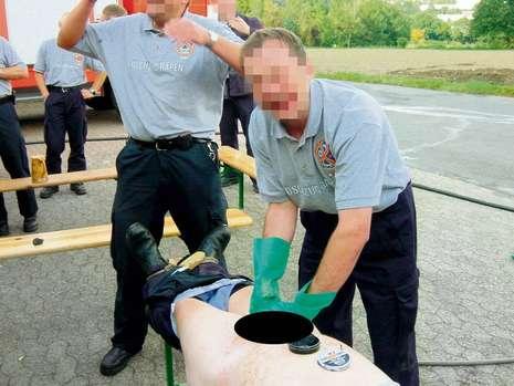 歐爾-艾根施威格消防隊(duì)在新人入職時(shí)將他赤身裸體的捆綁在長(zhǎng)椅上,用水噴他,并讓他躺在泥漿里。