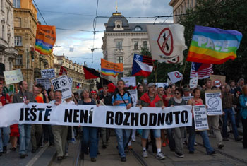 數千捷克民眾8日傍晚在布拉格舉行示威游行,抗議政府簽約同意美國在捷克建立反導雷達基地。黃頻攝影