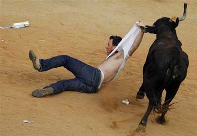 西班牙奔牛節繼續瘋狂 7人已被牛角刺傷(組圖)