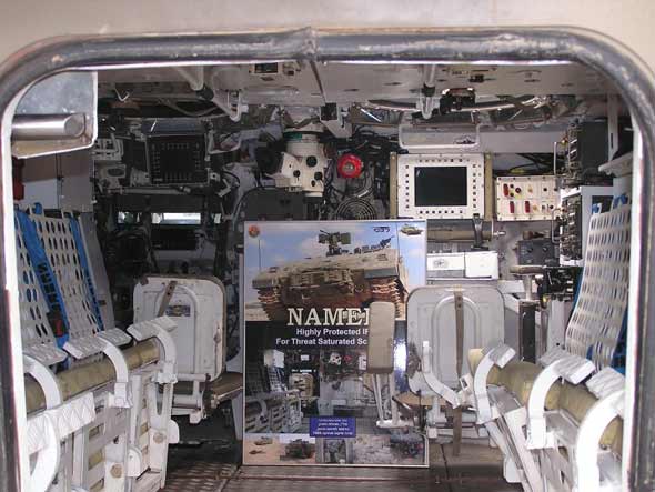 目前,該車采用“梅卡瓦”3/4主戰坦克的功率為882kW的AVDS柴油機,未來生產車輛的動力裝置有兩種選擇:L-3通信公司戰斗推進系統分部的改進型AVDS發動機和基于MTU 883柴油機的動力裝置。基型車裝備“卡特拉尼特”(Katlanit)遙控武器站,其上裝有車長用12.7毫米或者7.62毫米機槍,外部安裝60毫米迫擊炮。可在戰場上重新配置遙控武器站,快速把武器改為MK 19式40毫米榴彈發射器。(王桂芝)