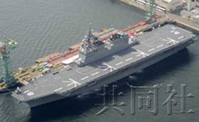 中新網3月18日電 據日本共同社報道,日本海上自衛隊第一艘搭載直升機的航母型護衛艦“日向”號日前建造完成,18日上午在橫濱市磯子區造船所舉行了交付儀式。