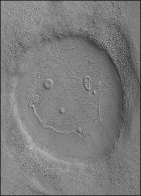 衛(wèi)星拍攝到火星"笑臉"照片 專(zhuān)家稱(chēng)只是巧合(圖)