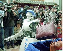 中新網7月11日電 綜合報道,從事機器人開發的日本TMSUK公司10日在北九州市的百貨商店內進行了通過手機遙控操作人形機器人的實驗。