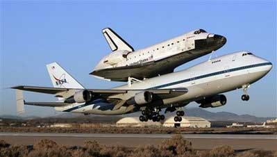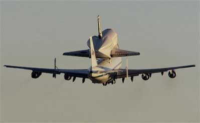 美國“奮進”號航天飛機10日從加利福尼亞啟程,“騎”在在一架波音747大型貨機背上,前往佛羅里達的肯尼迪航天中心的“老家”。由于天氣不好,“奮進”號在結束了本次太空之旅后,因佛羅里達天氣不好,只能備降在加州的愛德華茲空軍基地。