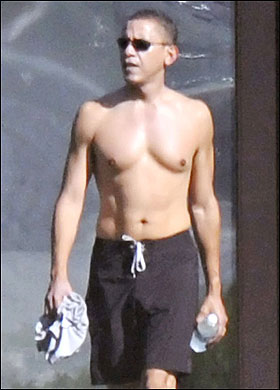 英報(bào)刊登奧巴馬度假半裸照 展示完美肌肉(圖)