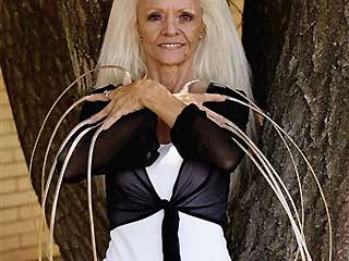 美國(guó)的蕾夢(mèng)女士從1979年以后,就沒有剪過指甲,去年她十指指甲總長(zhǎng)已經(jīng)達(dá)到853公分,其中最長(zhǎng)的一根是右手大拇指的89公分。