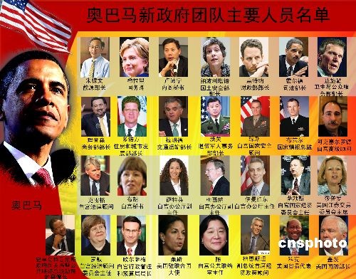 奧巴馬提名的內(nèi)閣成員名單如下: