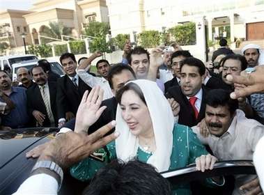 巴基斯坦總統(tǒng)穆沙拉夫希望在選舉中得到布托政黨的支持。兩人后來達成協(xié)議,當局終止對布托貪污罪名的指控。另一方面,巴基斯坦最高法院今年8月裁決,被政變趕下臺并流亡國外的前總理謝里夫可以回國。