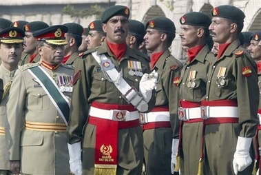 據(jù)報(bào)道,當(dāng)穆沙拉夫抵達(dá)拉瓦爾品第的巴基斯坦陸軍總部時(shí),約由150名巴基斯坦海陸空軍組成的儀仗隊(duì)接受了他的檢閱。在軍樂隊(duì)奏起的巴基斯坦國(guó)歌聲中,身著軍裝,外披綠白色綬帶,胸前懸掛一排勛章的穆沙拉夫在陸軍總部的閱兵廣場(chǎng)上最后一次檢閱了部隊(duì)。